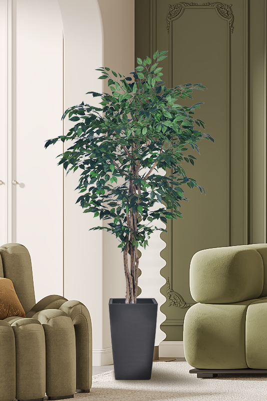 Il nostro albero di Ficus artificiale cattura l'elegante bellezza della natura con un realismo sbalorditivo. Perfetto per gli spazi in cui le piante vive faticano a prosperare, questo albero realistico mantiene il suo aspetto vibrante tutto l'anno con zero manutenzione.